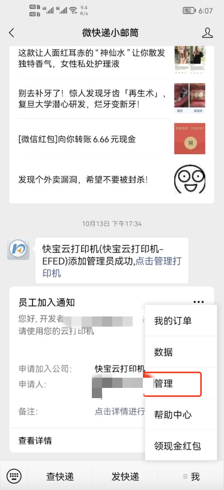 打印第一遍的时候  会发送请求到扫码绑定微信小邮筒公众号进行授权。同意之后才可打印